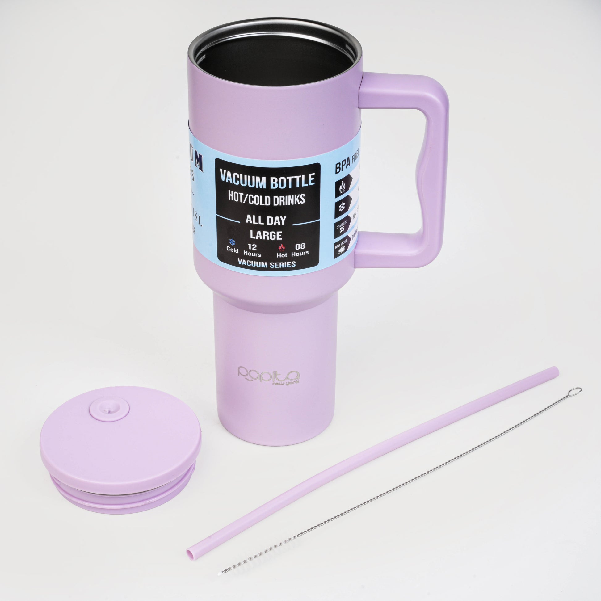Tumbler with Handle and Straw Lid, Reusable Vacuum Insulated Stainless Steel Water Bottle Leakproof Coffee Sipper Mug for Keeping Beverages Hot or Cold, Perfect for Travel