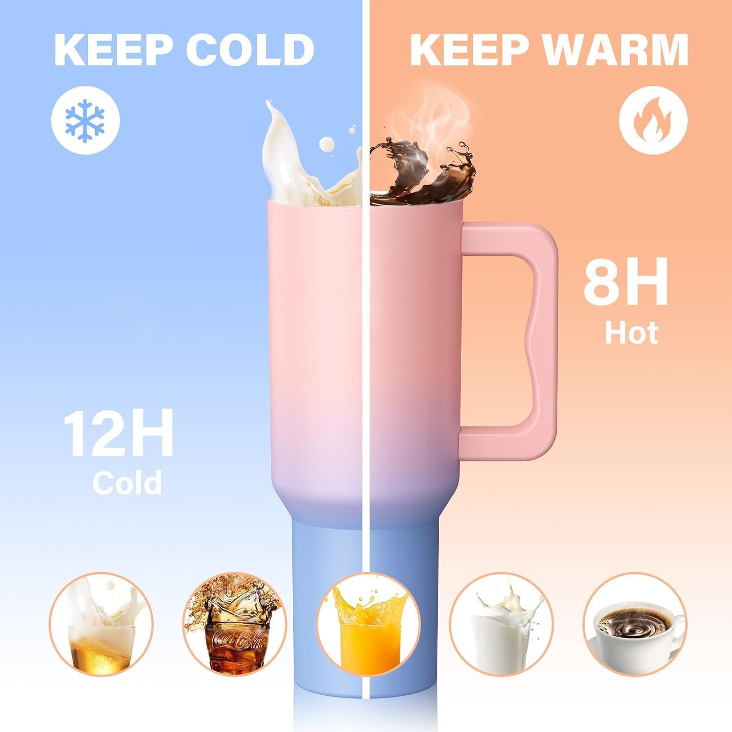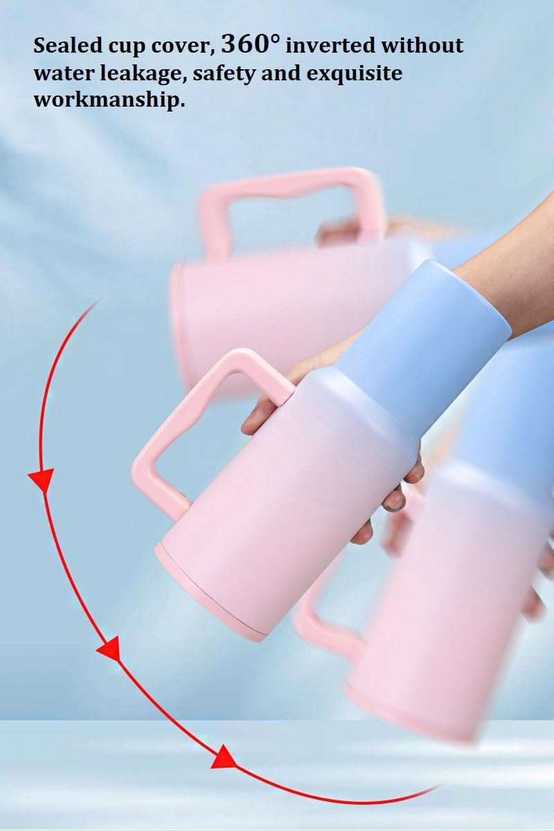 Tumbler with Handle and Straw Lid, Reusable Vacuum Insulated Stainless Steel Water Bottle Leakproof Coffee Sipper Mug for Keeping Beverages Hot or Cold, Perfect for Travel